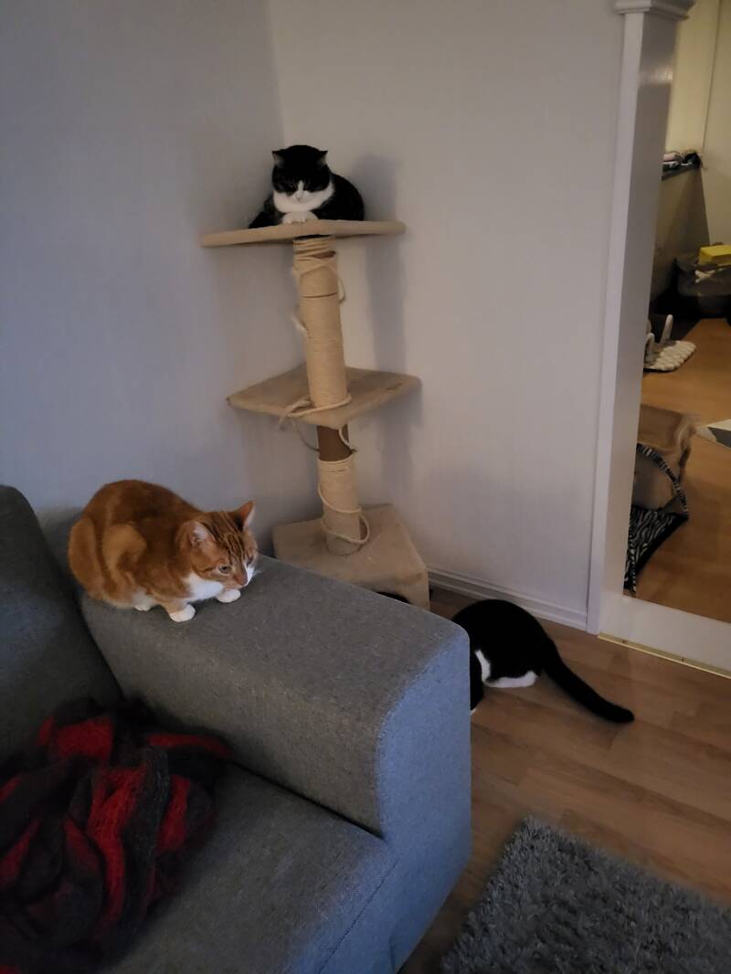 Kattene koser seg med sitt nye hus og sine nye leker🥰